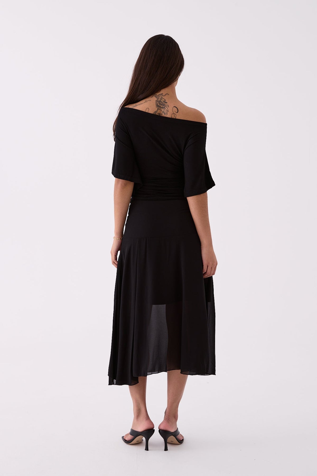 The Aria Top features a wide neckline, soft flutter sleeves, and subtle ruching through the waist for a flattering, form-skimming fit.