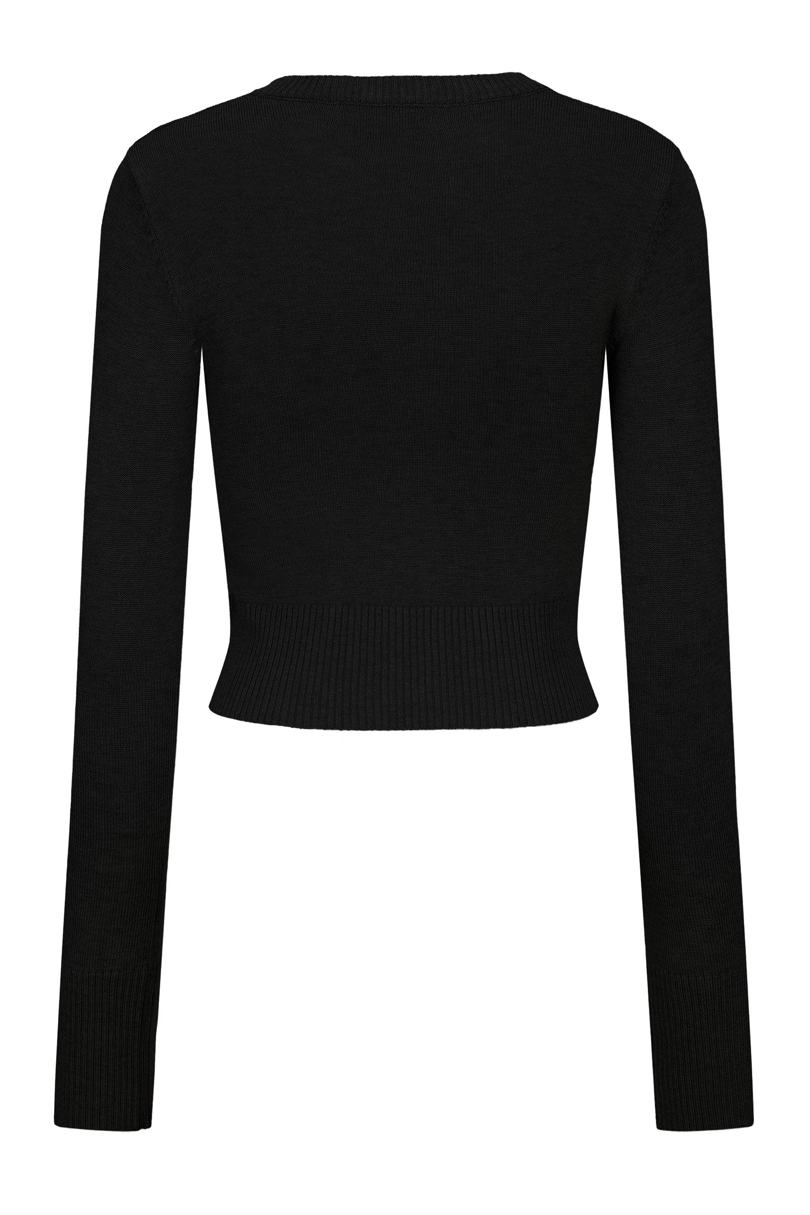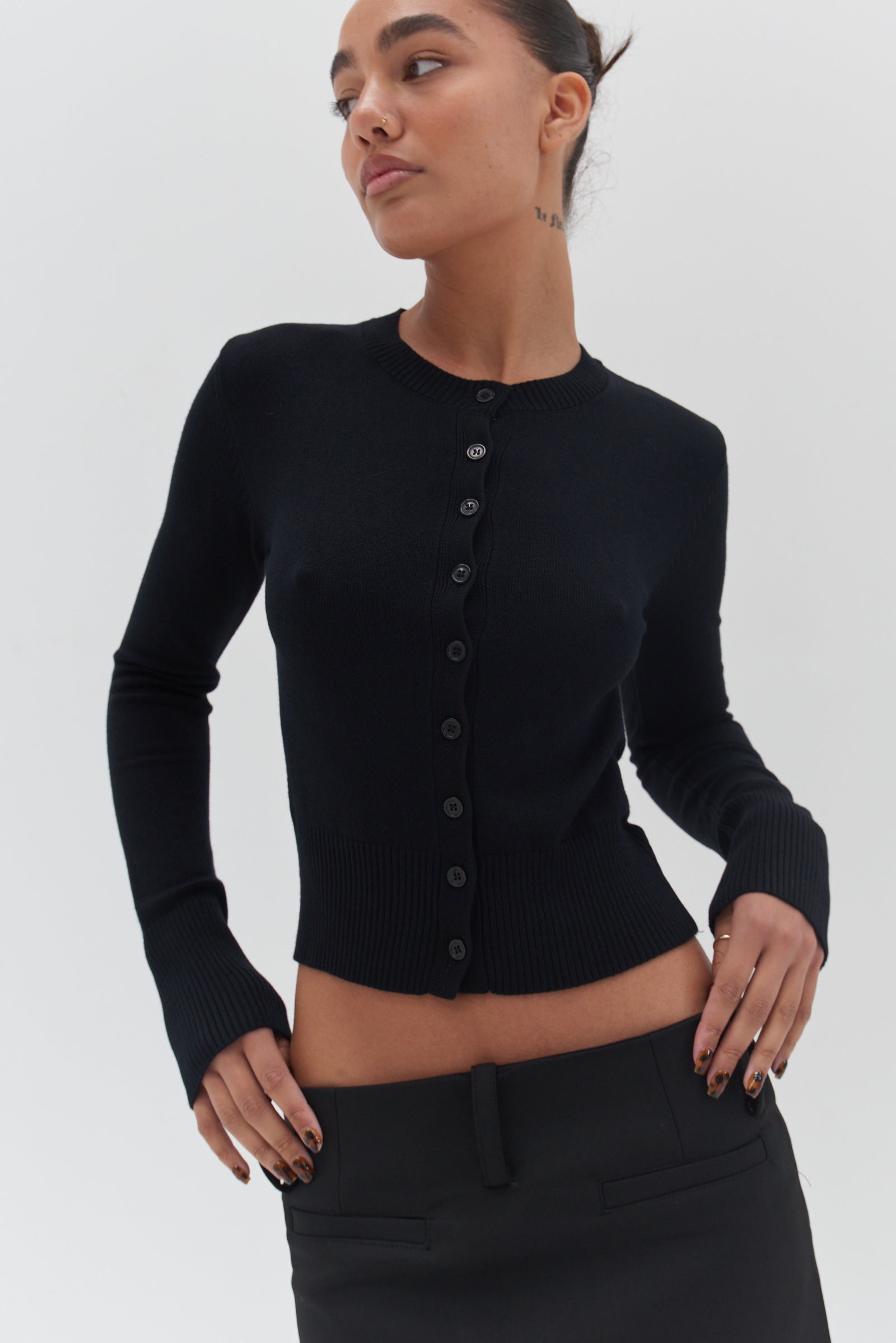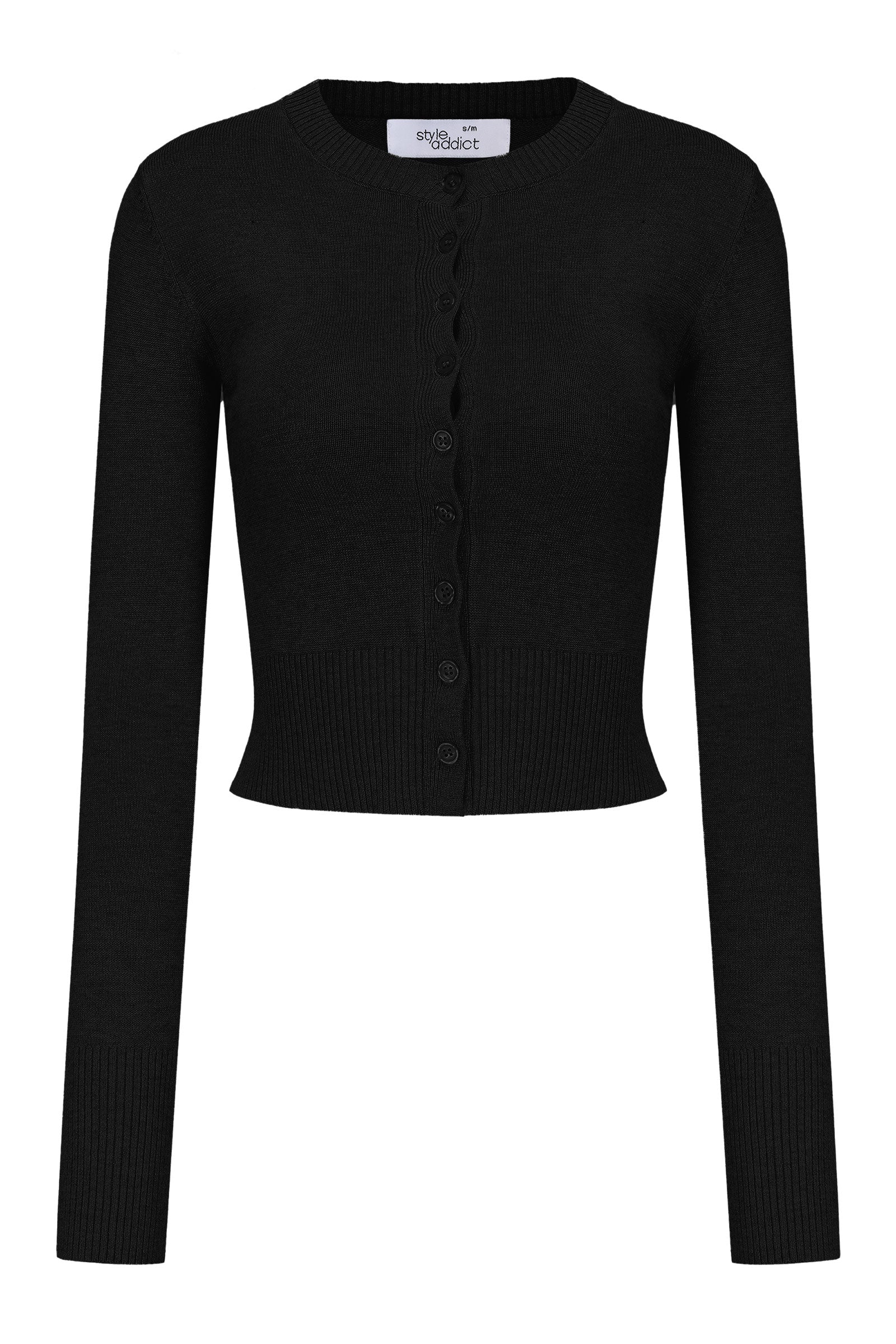 A cozy wardrobe essential! Our Camille Cardigan - Black is crafted from a soft black knit; featuring - a classic button-up front, slightly cropped length and finished with ribbed detailing to the hem, cuffs and neckline