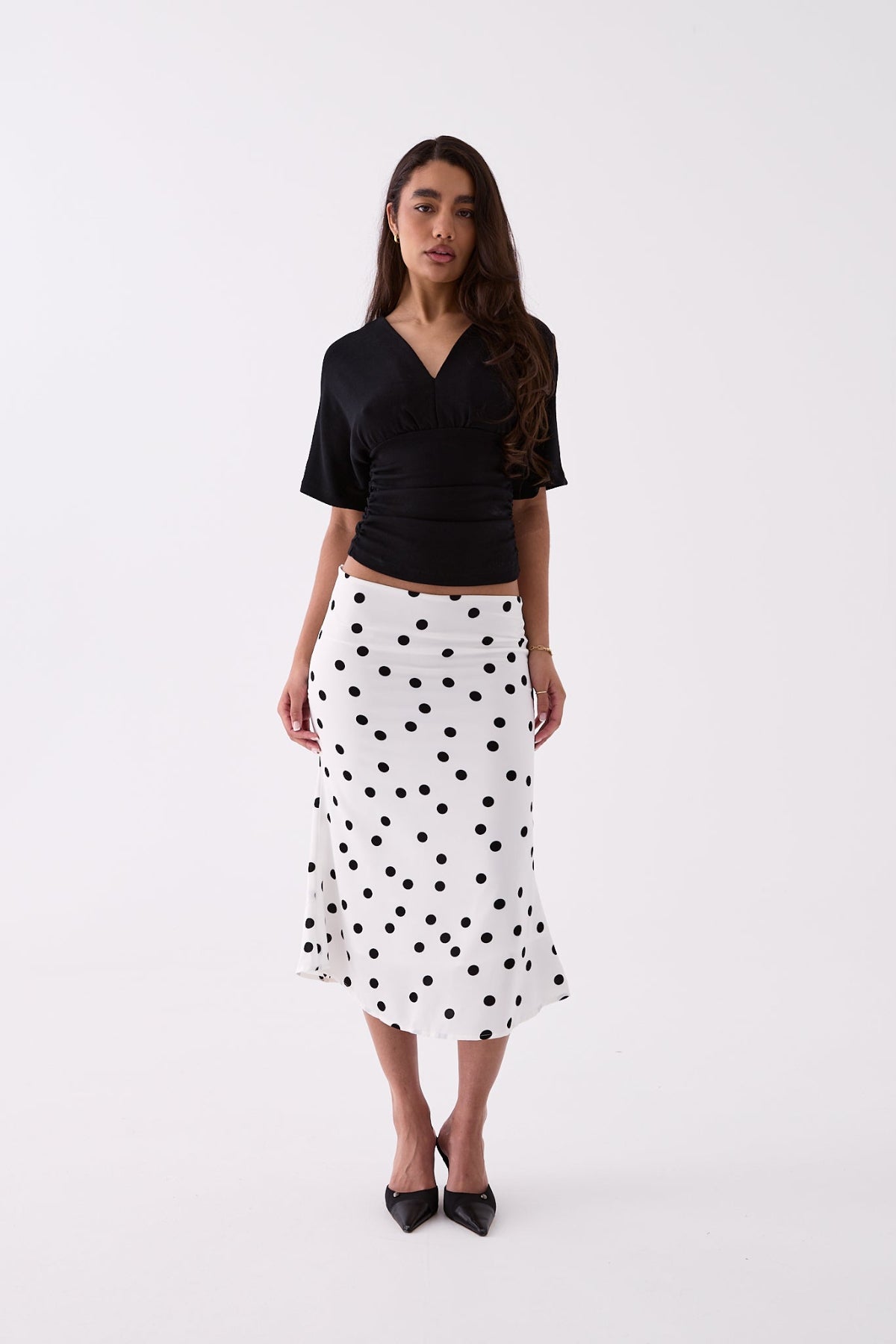 Soft structure meets effortless ease. The Emery Top features a deep V-neckline, relaxed flutter sleeves, and a gathered waist that defines the silhouette while keeping a comfortable drape. Designed to transition seamlessly from day to night, pair with tailored pants or a bias skirt for a balanced, modern look.