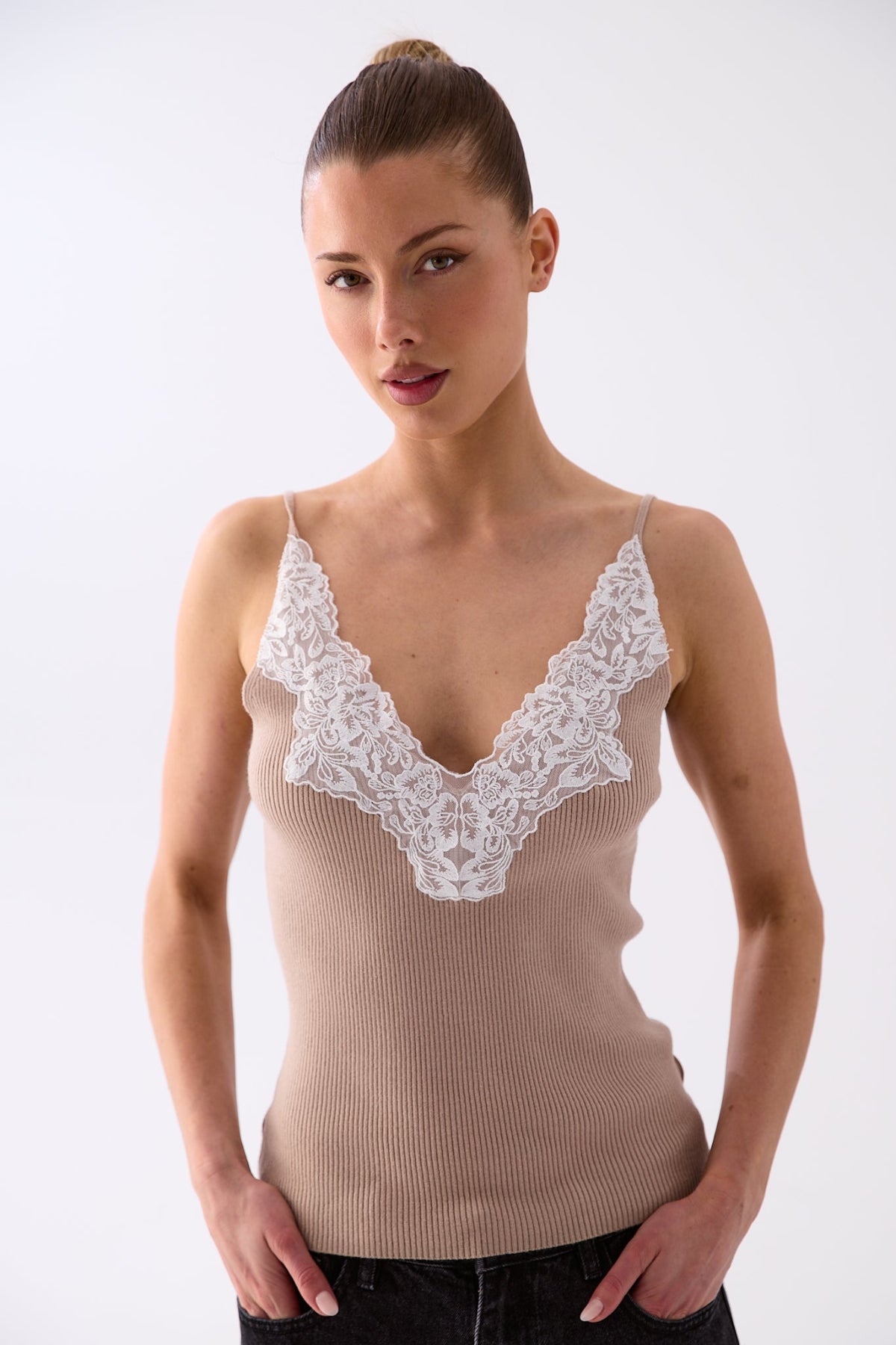 Luna Lace Trim Cami - Oat