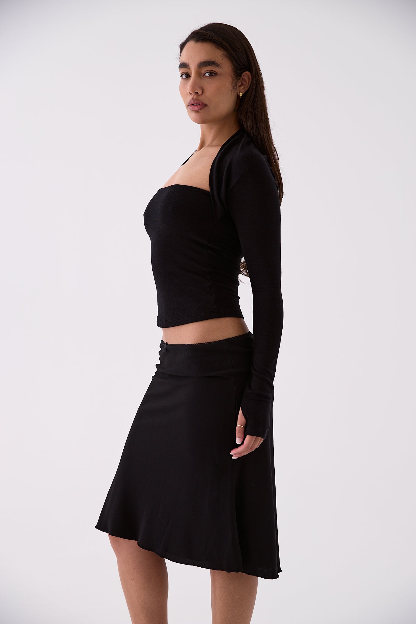 Inspired by 90's the Maidson Skirt feature a scallop waist, bow detail and full lining.