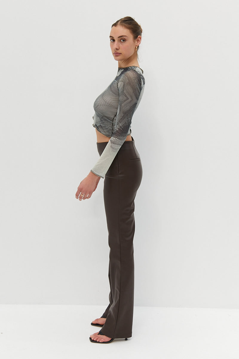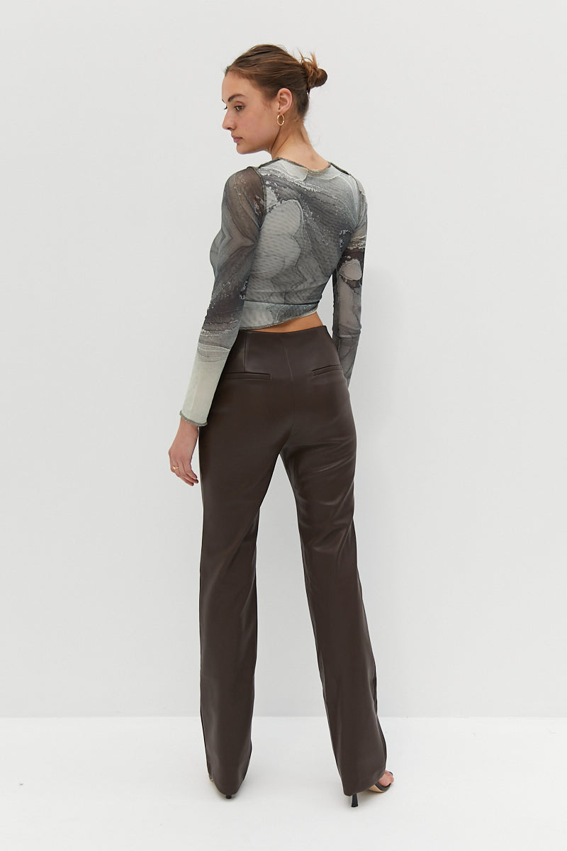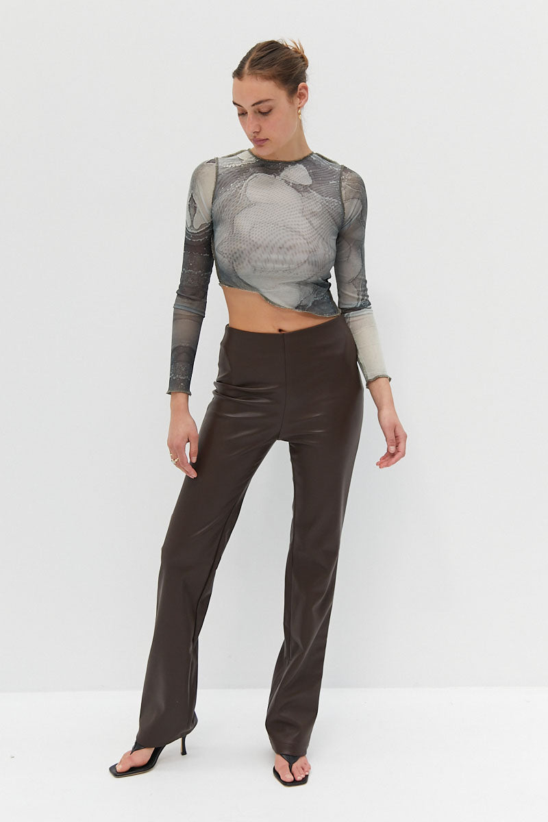 Exclusive mesh print top featuring exposed seam detail and asymmetrical hem