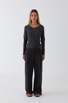 Simple, sculpted, and easy to wear. The Marlo Top features a wide boat neckline, ruched waist, and a soft stretch fit that shapes without clinging. Designed to feel elevated yet effortless—style with relaxed trousers or layer under tailoring.