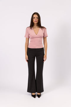 Mila Deep V Tee - Rose