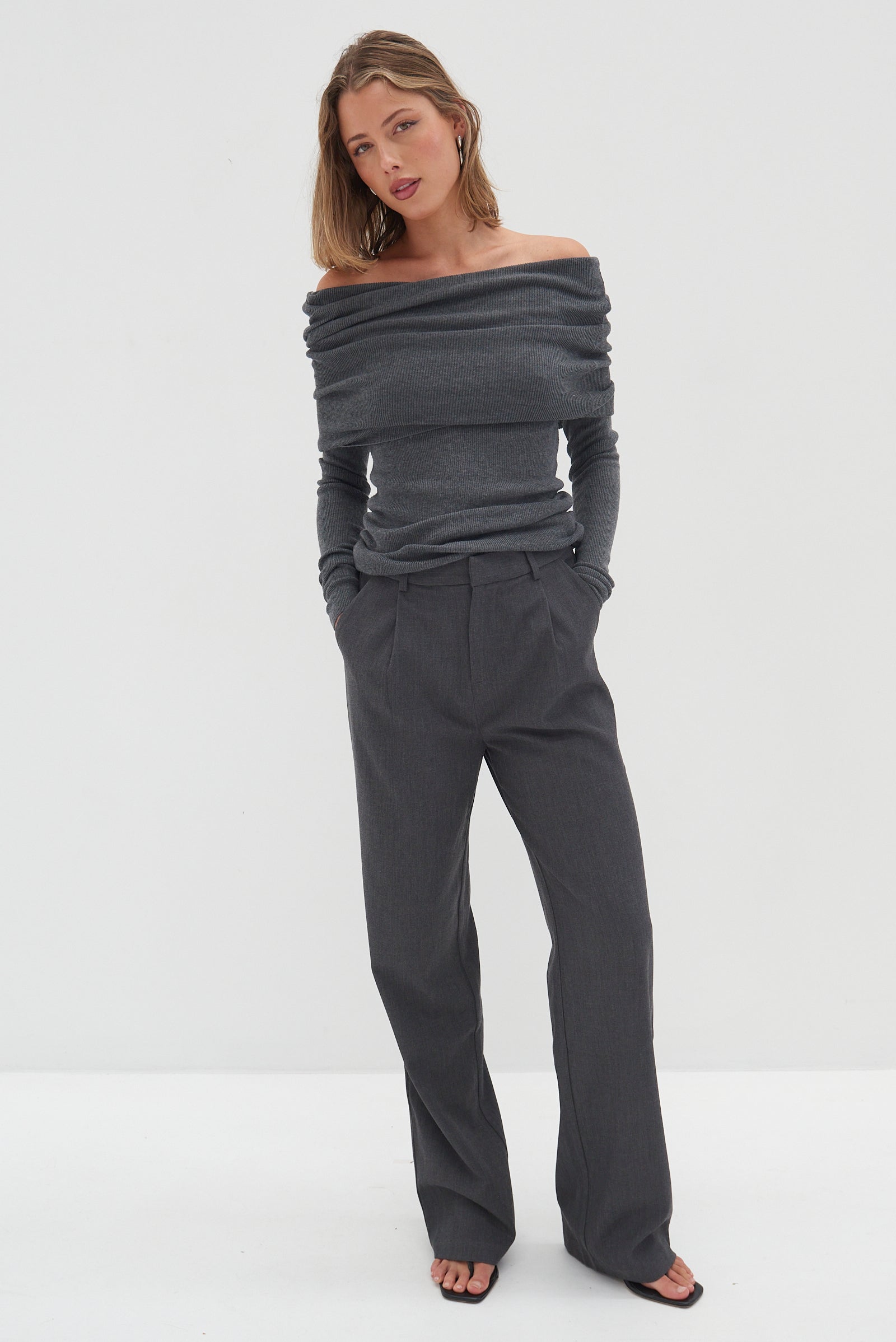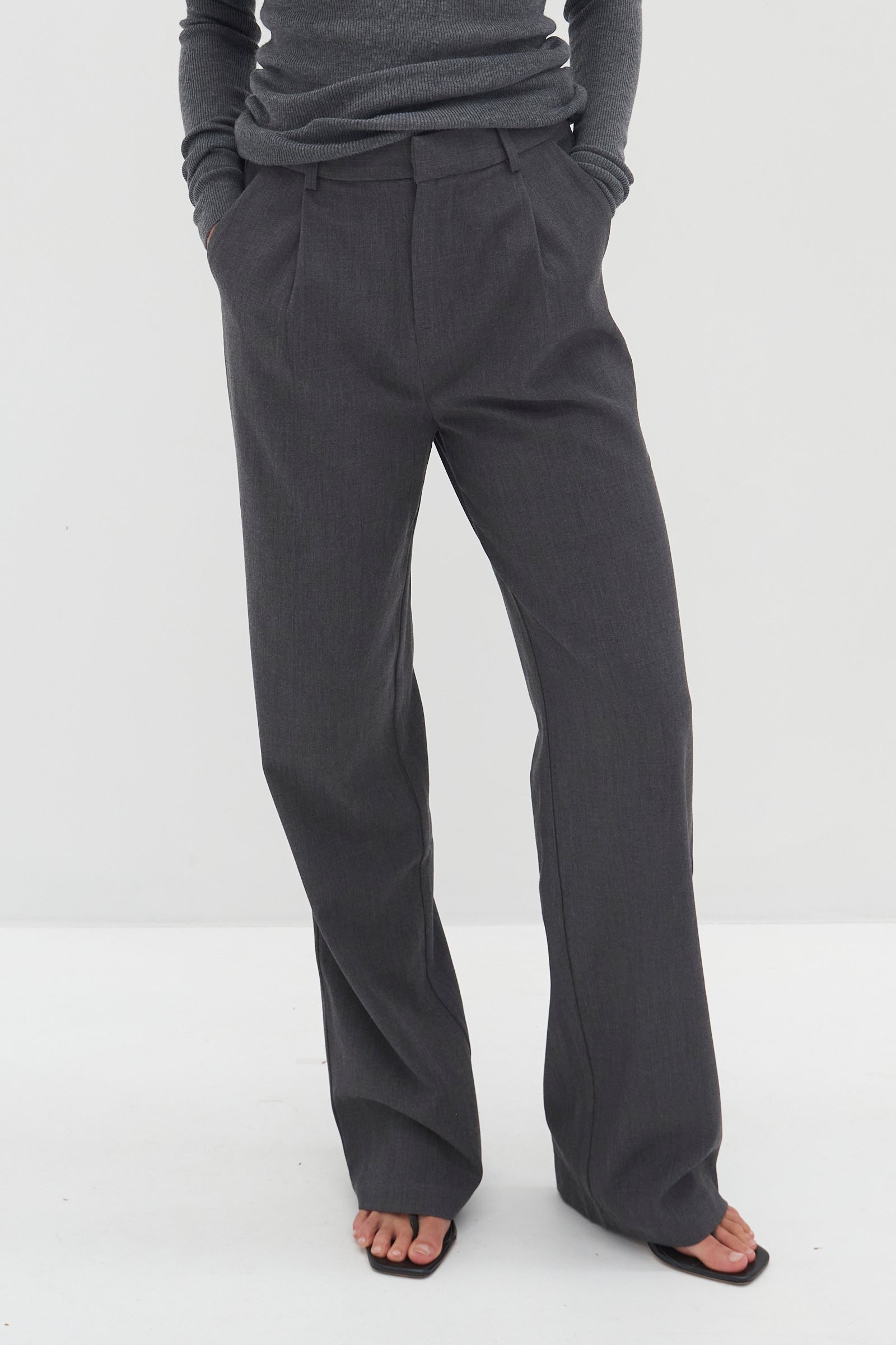 Crafted from thick fabric - the Nicholas Pants - Dark Grey are a relaxed; tailor fitted pair of pants. Perfectly paired; dressed down with sneakers and tee or dress it up with heels and white shirt