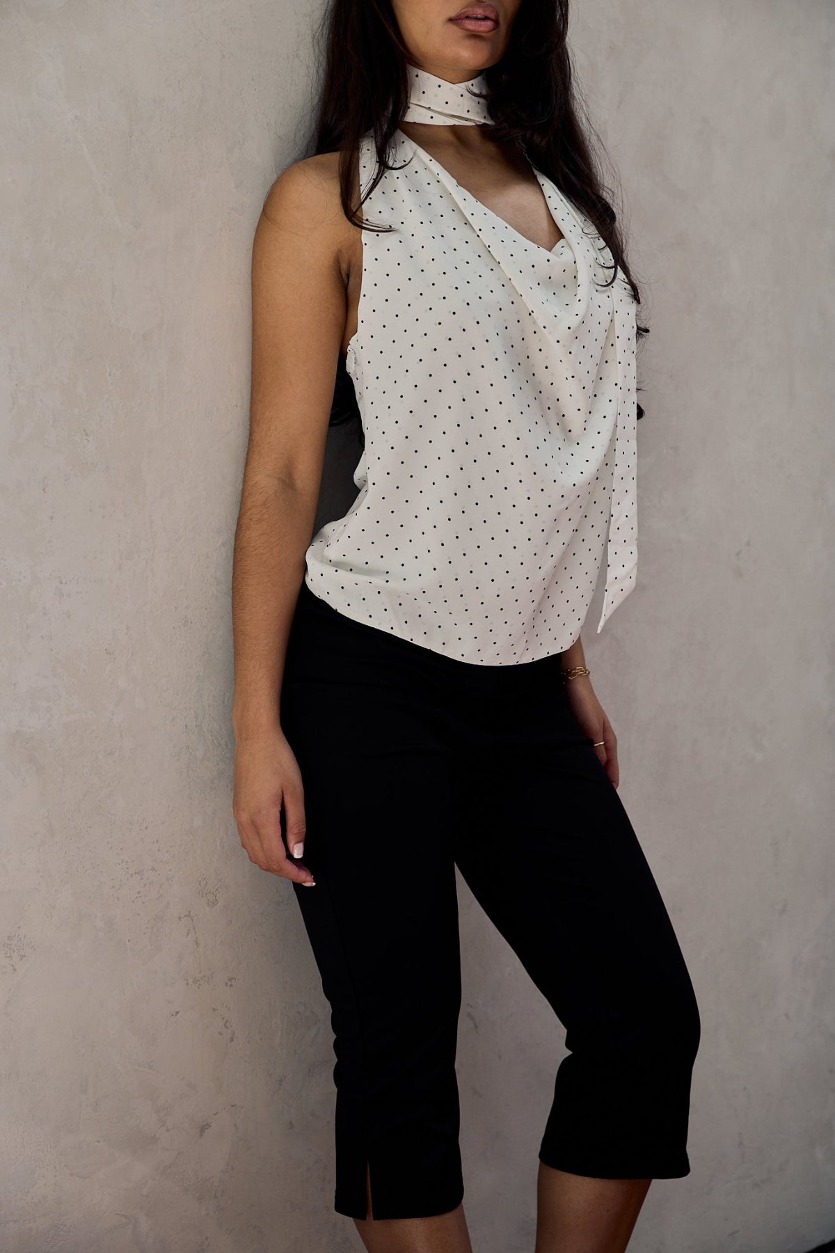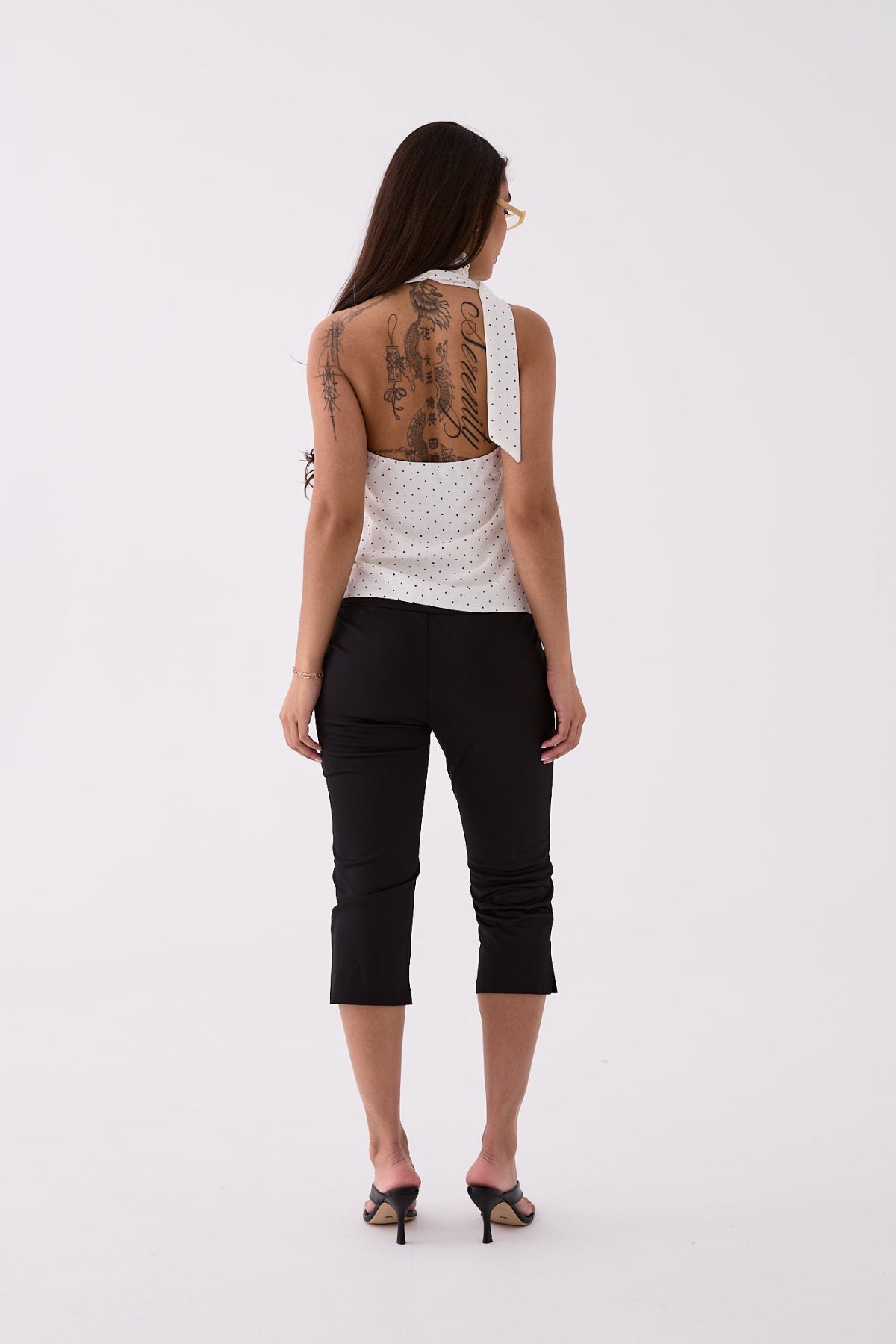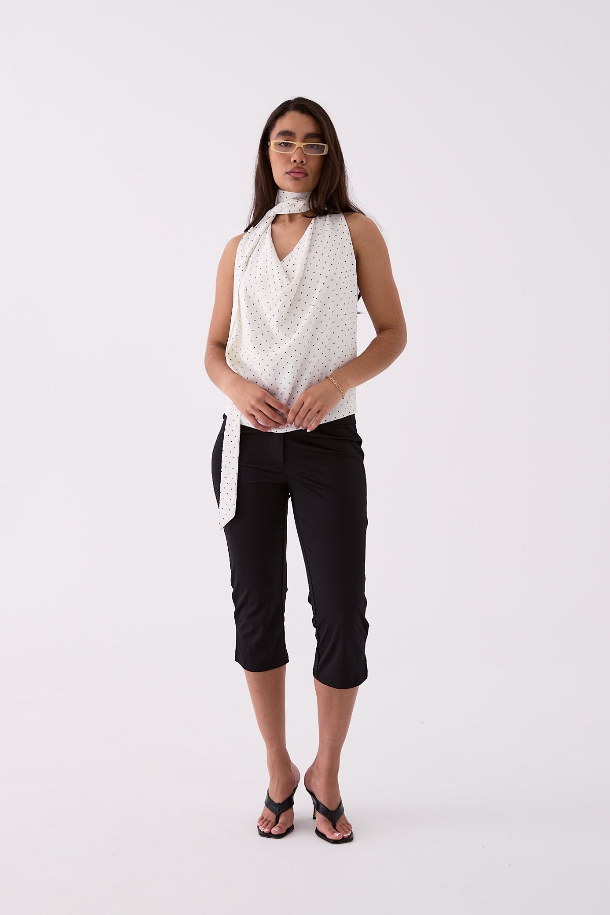 The Nova Capri features a mid-rise waist, slim cropped leg, and small side slits on leg.