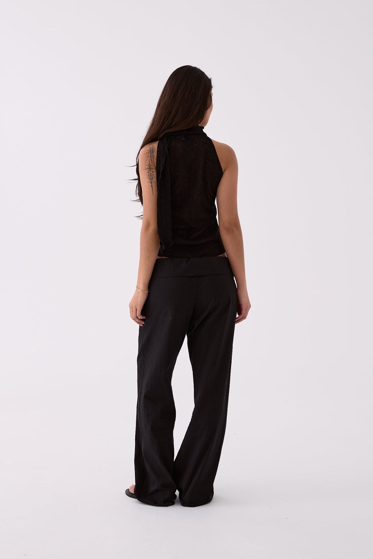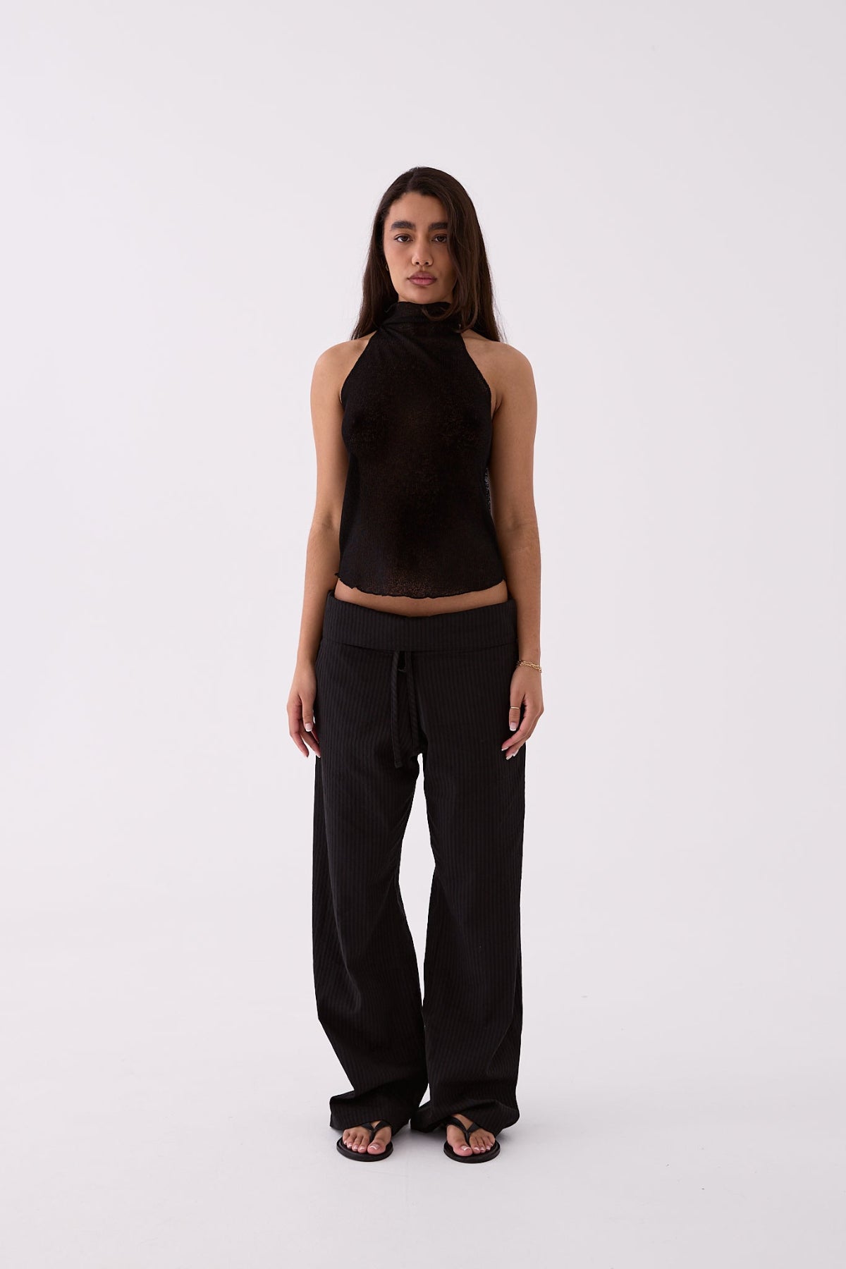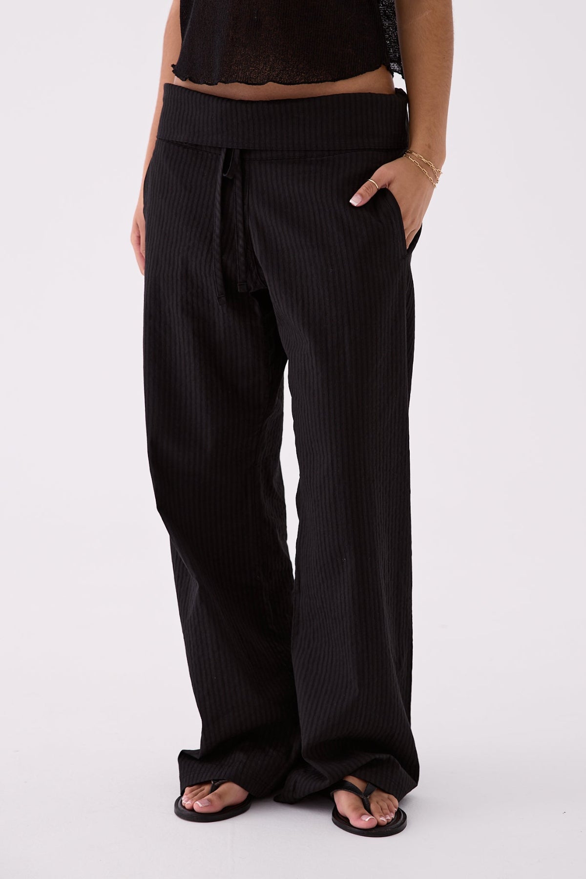 - Fold-over waistband with tie detail