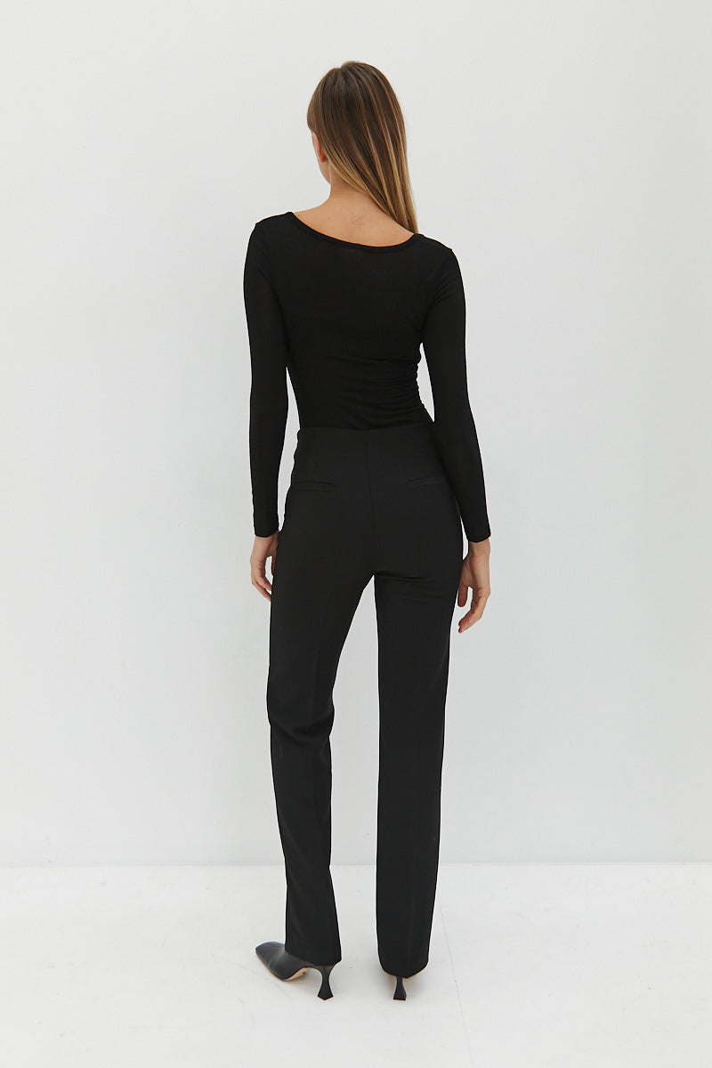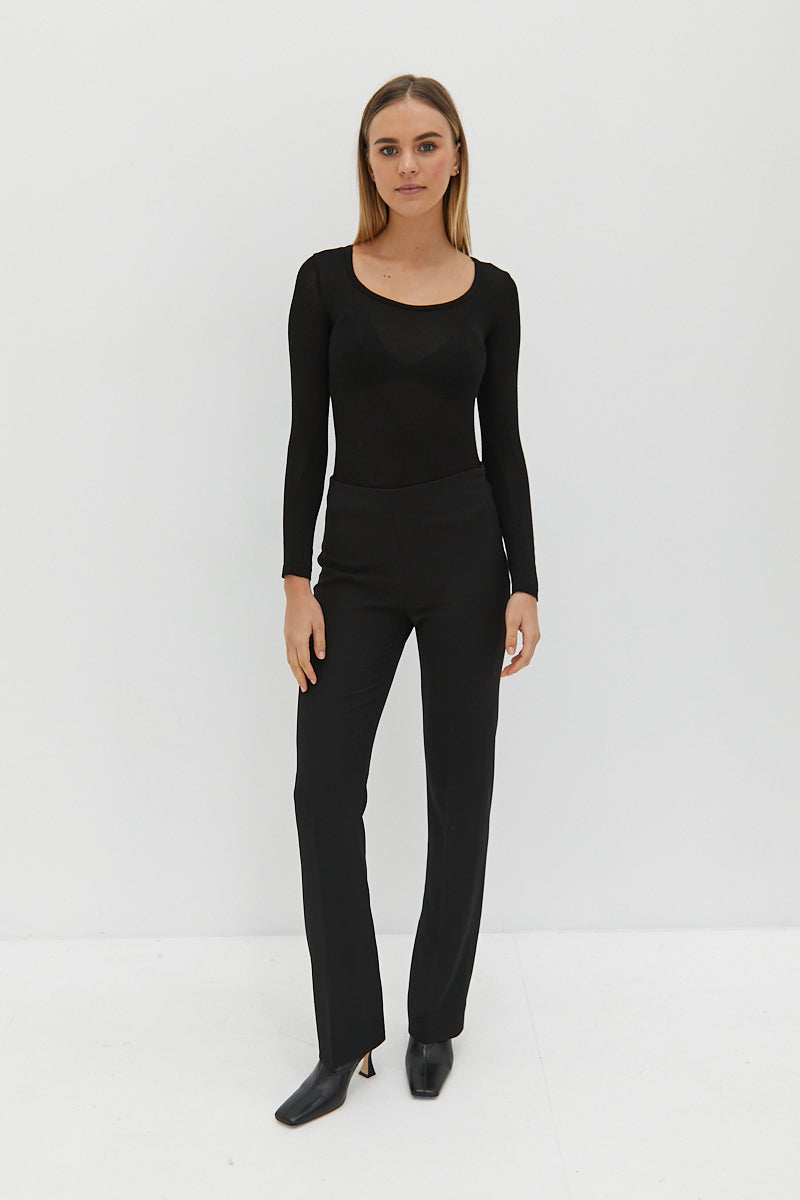 The Semi Sheer Top features semi sheer fabric and scoop neckline. Worn here with the Rachel Pants
