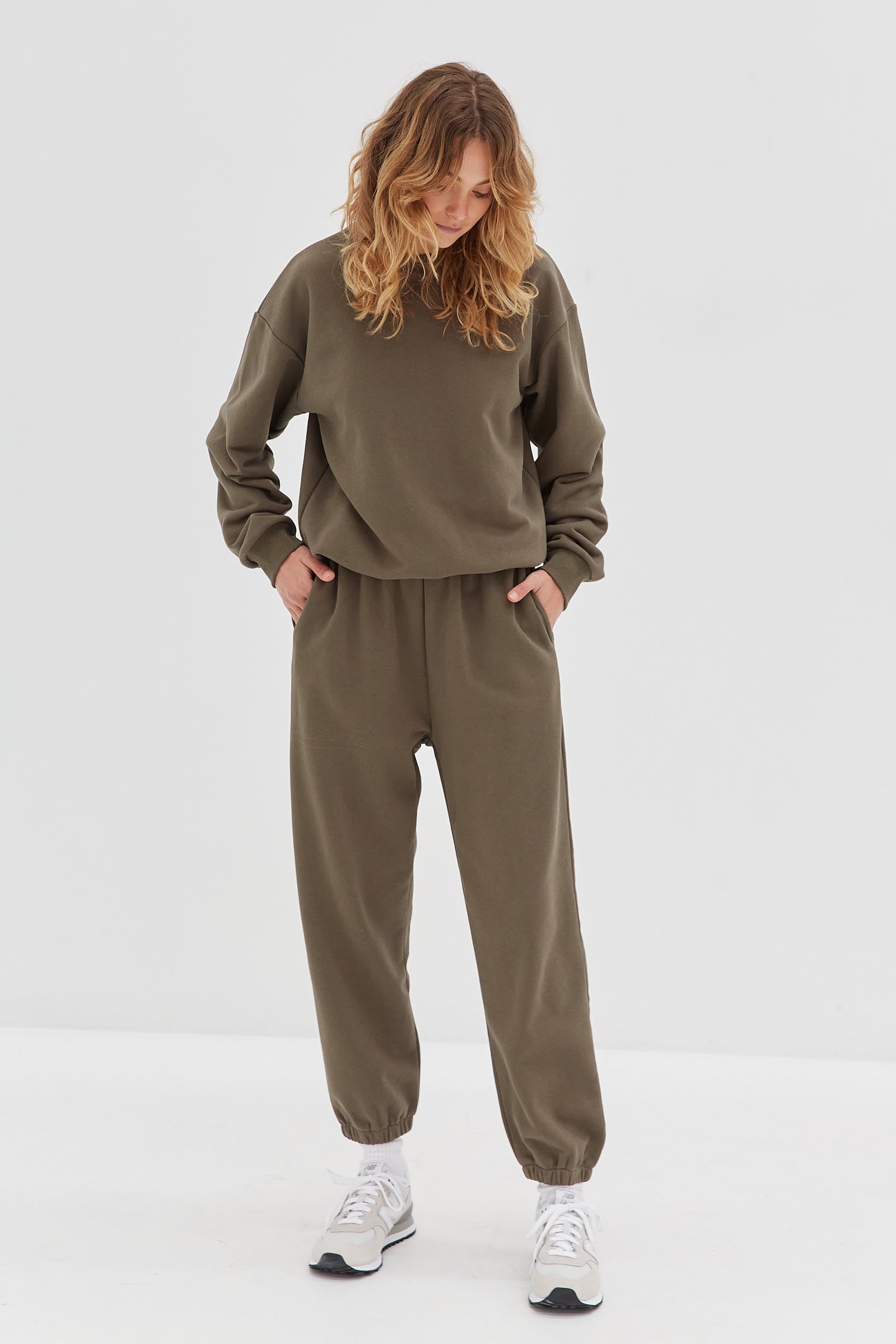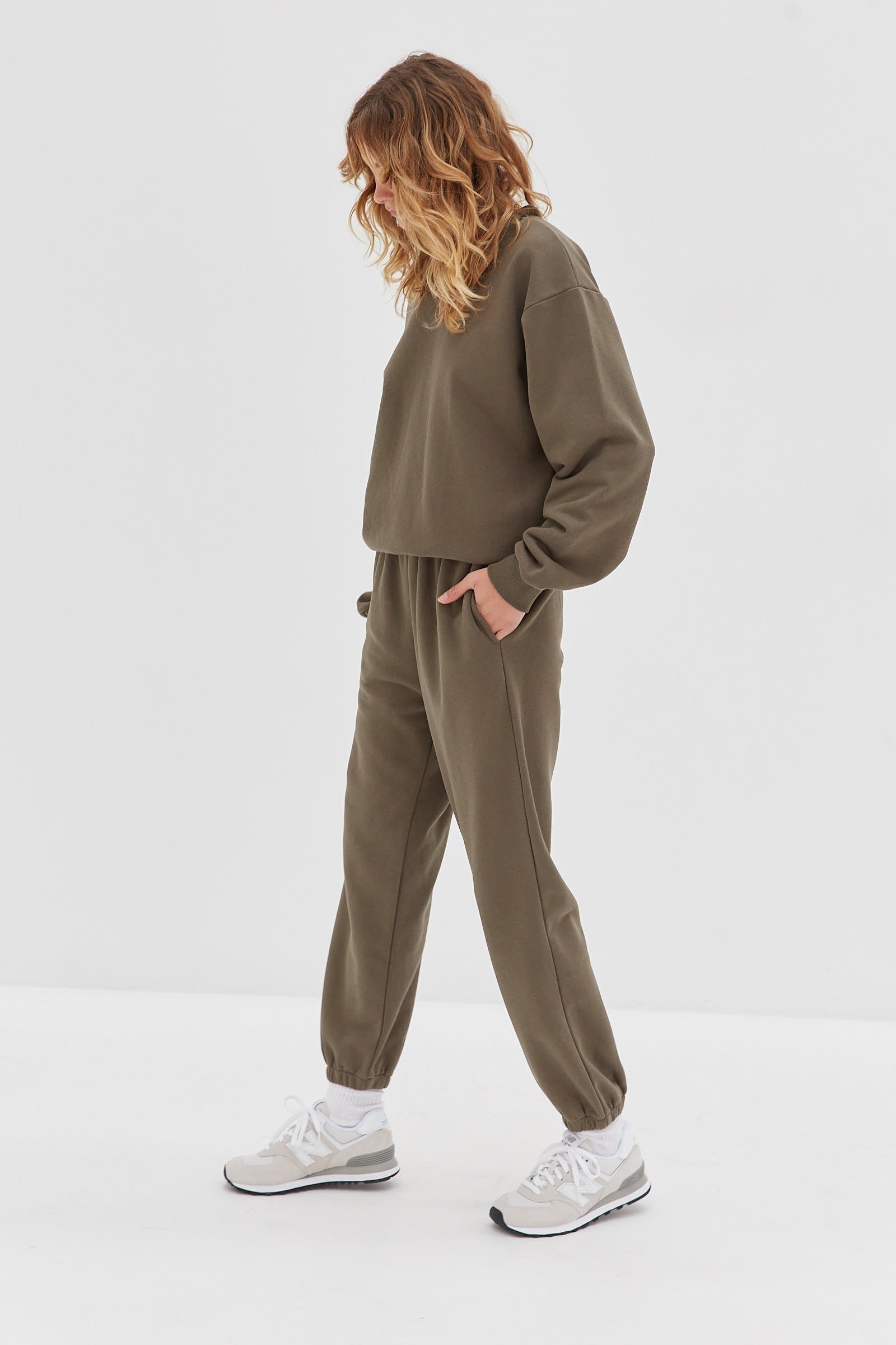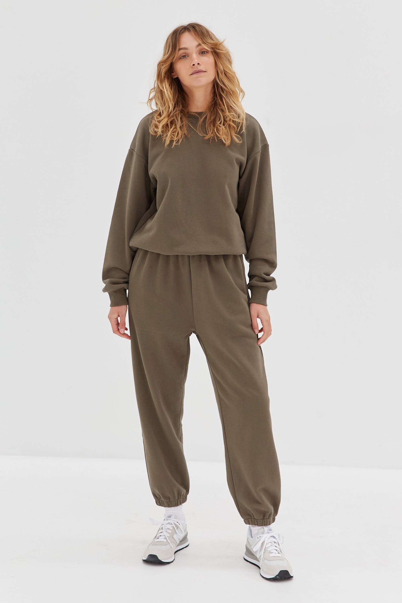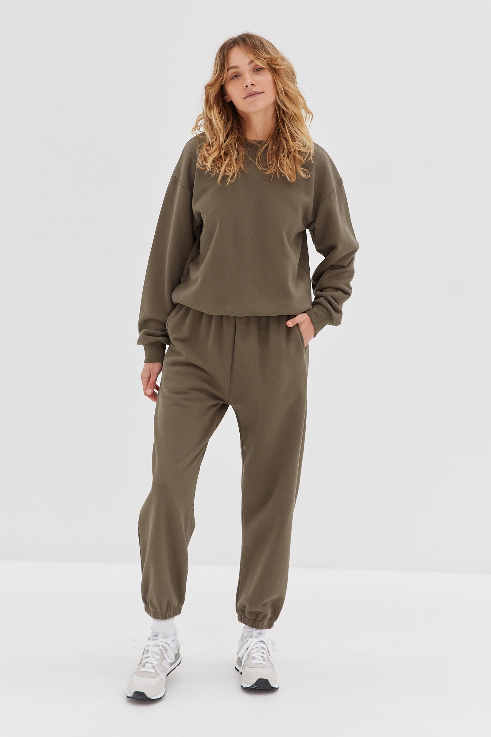 Crew neck sweatshirt with dropped shoulder and ribbed trim. Made from mid-weight fleece with comfortable brushed inside