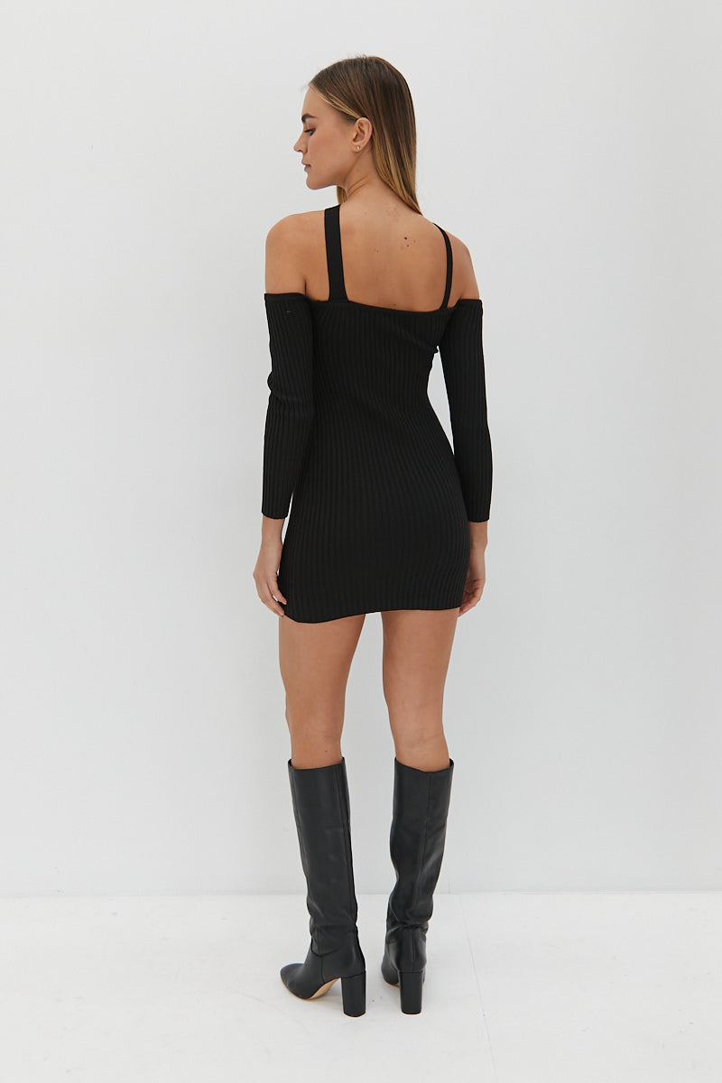Statement top featuring strap criss cross neckline, long sleeves and ribbed material.