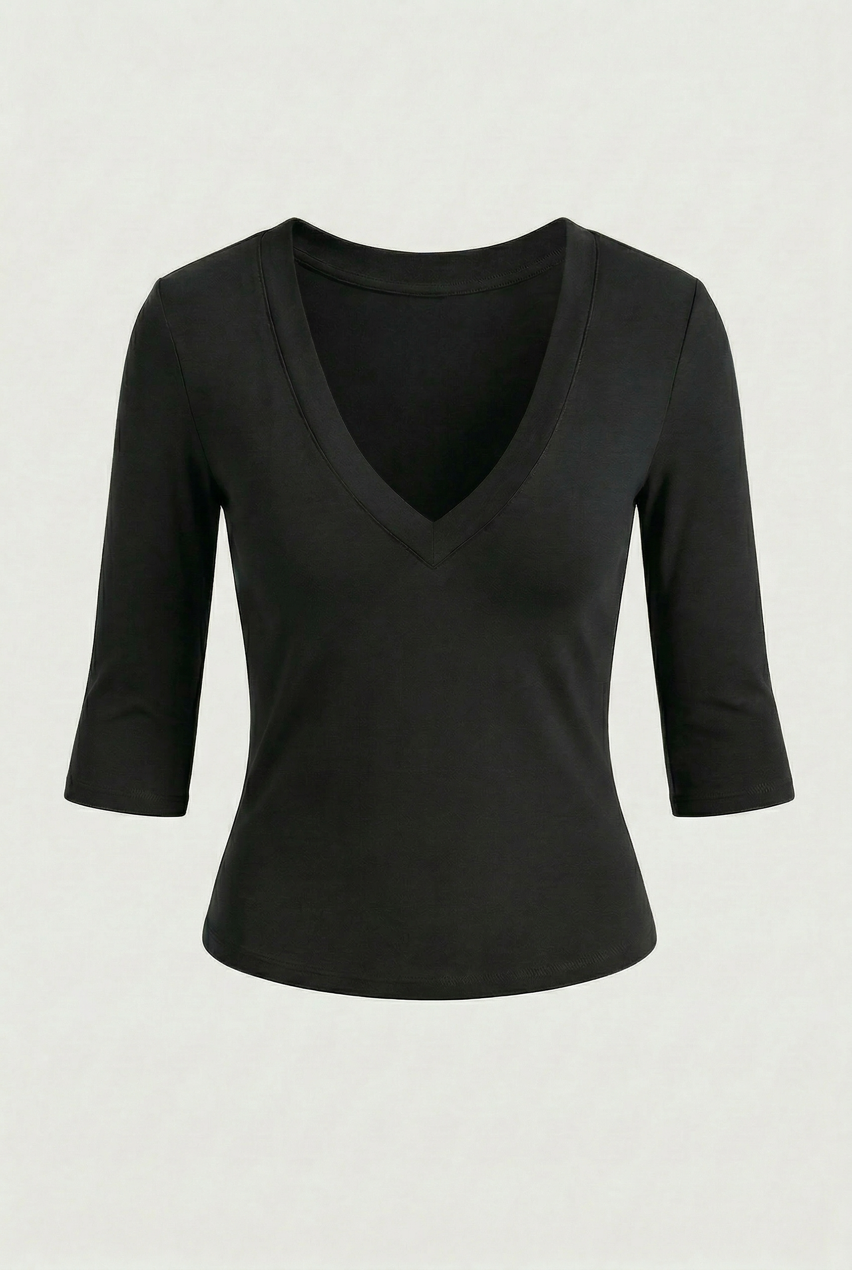 A clean, refined essential. The V Top is crafted from a soft stretch knit that contours the body, finished with a deep V neckline for a modern, understated silhouette. Designed for effortless styling, it pairs seamlessly with denim, tailoring, or layered under outerwear.